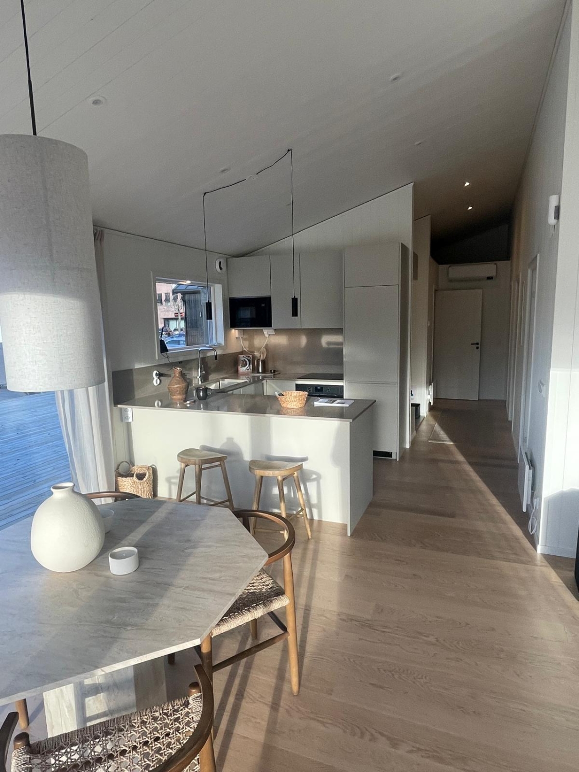 Till försäljning: Exklusivt visningshus Klassisk 100.3 med omgående tillträde. Detta arkitektinredda hem levereras komplett med platsbyggda garderober och genomtänkta materialval. Den öppna planlösningen mellan kök och vardagsrum badar i naturligt ljus tack vare generösa fönsterpartier och högt i tak. Tre välplanerade sovrum, stort badrum med bastu samt goda förvaringsmöjligheter i hallen. Ett stilrent och flexibelt boende som passar lika bra som permanent villa eller påkostat fritidshus.